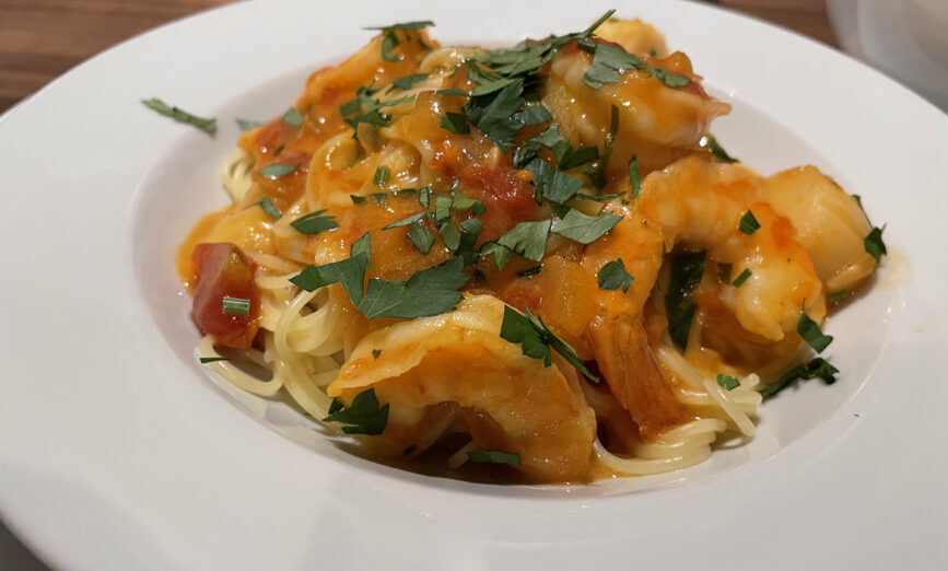 Adicione os camarões e as vieiras, prove o tempero e cozinhe por mais um ou dois minutos.