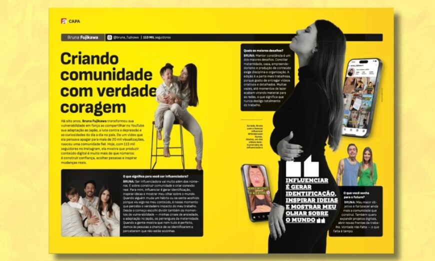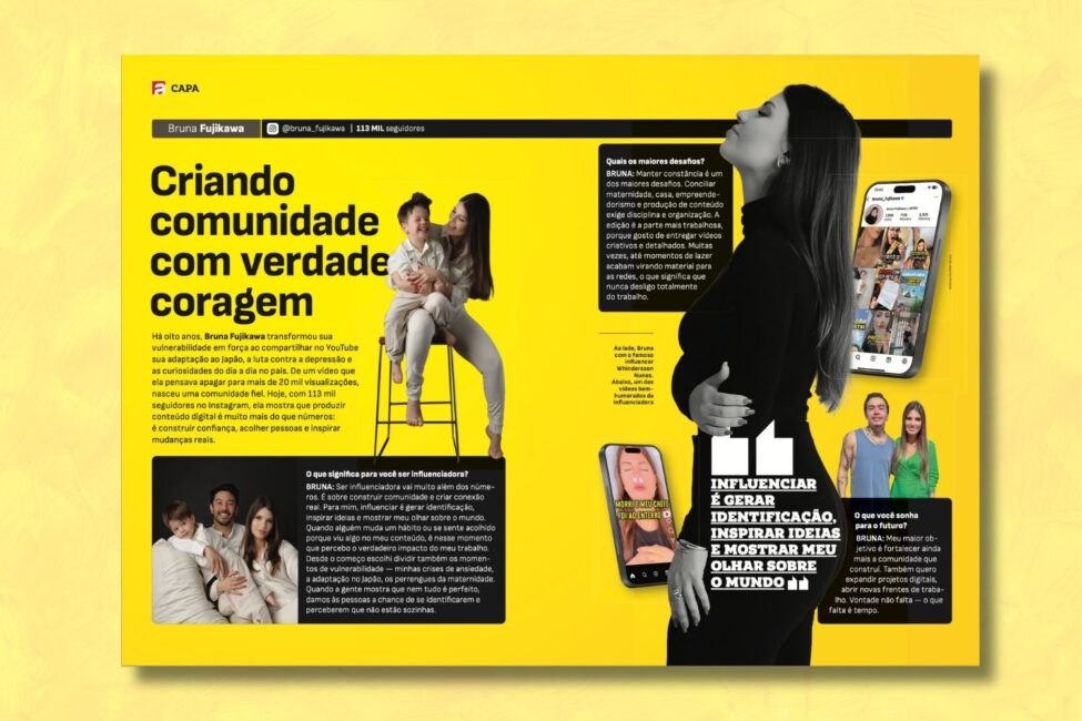 BRUNA: Eu acredito que uma das maiores responsabilidades de um influenciador é mostrar a vida real. A internet muitas vezes passa a impressão de que tudo é perfeito, mas não é assim. Desde o começo, escolhi compartilhar também os meus momentos de vulnerabilidade: minha adaptação no Japão, crises de depressão e ansiedade, perrengues da rotina e até os desafios da maternidade. Mostrar que problemas existem, que nem tudo dá certo o tempo todo, e principalmente como eu lido com cada situação, é uma forma de responsabilidade. Porque quando mostramos a vida como ela é, damos às pessoas a chance de se identificarem e de perceberem que não estão sozinhas. Até hoje, mesmo depois de 8 anos, recebo mensagens de pessoas dizendo que decidiram procurar ajuda porque se reconheceram nos meus vídeos. Outros me contam que aprenderam algo sobre o Japão porque eu mostrei do meu jeito — o olhar de quem também não domina o idioma, mas vai aprendendo no caminho. No conteúdo de maternidade, acontece a mesma coisa: seguidoras me dizem que passaram a aplicar no dia a dia com seus filhos algo que aprenderam comigo. Esse retorno mostra o impacto real do que compartilho. Na hora de escolher temas ou parcerias, sigo uma regra simples: só falo do que é relevante para a minha vida e para a comunidade que me acompanha. Influenciador não é modelo de vitrine que posa para várias marcas sem conexão. Influenciar é criar confiança, é vender uma ideia. Por isso, acredito que o influenciador precisa ser “de time”: vestir a camisa de uma empresa e mostrar que realmente confia nela. Já recusei parcerias porque testei e não achei o produto bom — não faria sentido incentivar as pessoas a gastarem dinheiro em algo que eu mesma não usaria. Essa coerência é o que dá credibilidade ao meu trabalho. No fim, o meu papel é ensinar, inspirar e compartilhar. Influencio tanto pelas minhas falas quanto pelo exemplo do que vivo, mostrando meu olhar sobre as coisas. E é isso que gera impacto: ser verdadeira, coerente e manter a confiança de quem está do outro lado.